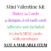 DETAILS: This kit provides all the paper materials and embellishments needed to make 24 MINI valentine cards.