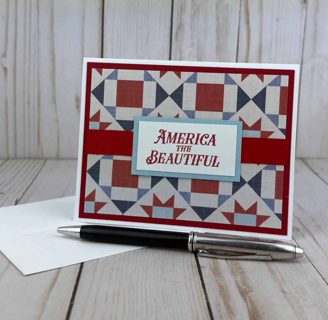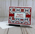 * 6 hand-stamped "America the Beautiful" sentiments in red ink on white cardstock with adhesive.