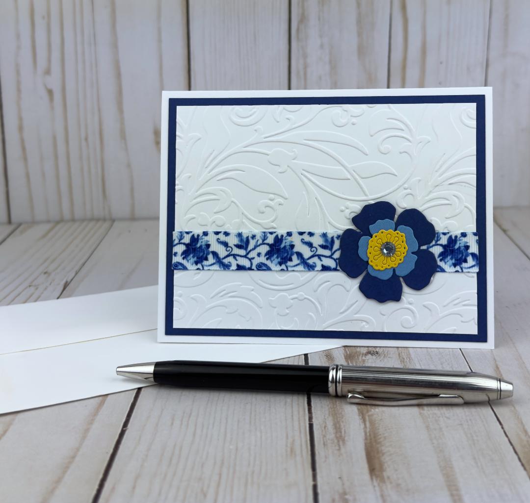 Blue and White Floral Card Kit to DIY 6 Embossed Flower Greeting Cards
