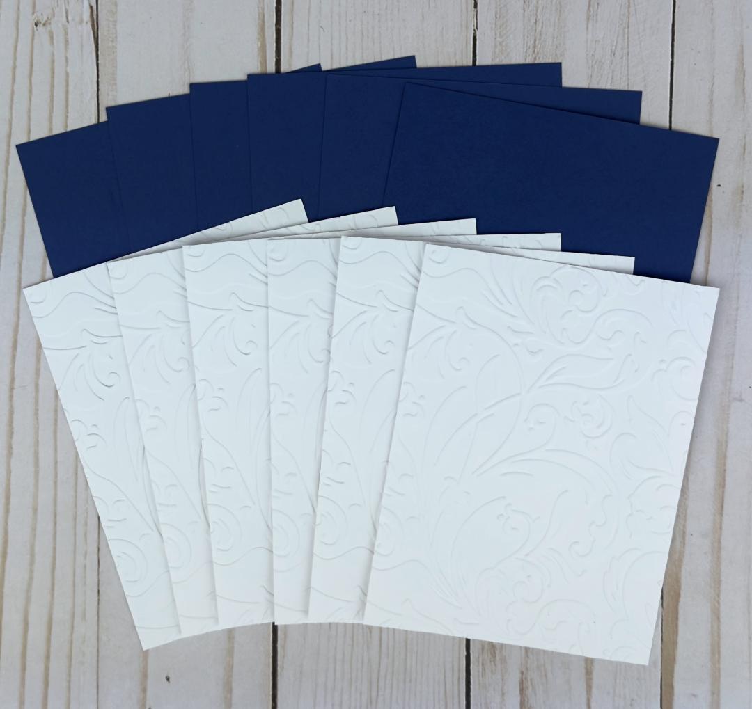* 6 pieces of white floral paisley embossed cardstock to serve as the second layer.