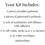 This card making kit allows you to create 6 blue hydrangea greeting cards. The DIY card kit contains all the paper materials and embellishments you need to assemble six A2 cards (4.25 x 5.5 inches), and comes with coordinating envelopes.