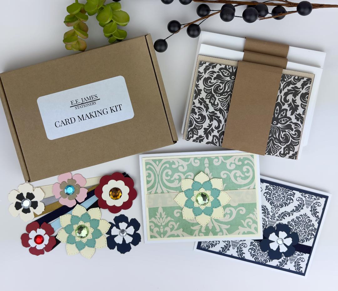 Classic Damask Card Making Kit for Adults to DIY 6 Floral Greeting Cards