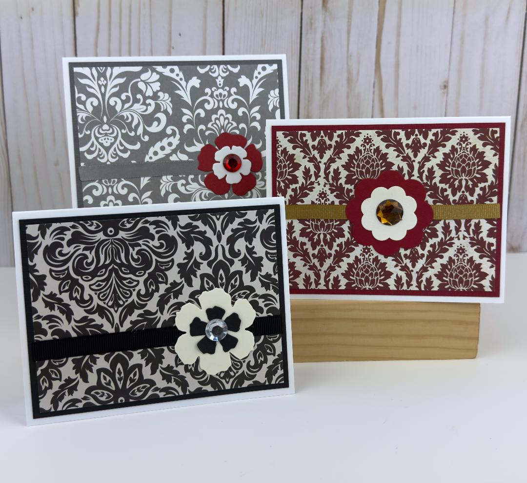 * 6 pieces of damask patterned cardstock to serve as the second layer (6 designs, 1 of each design).