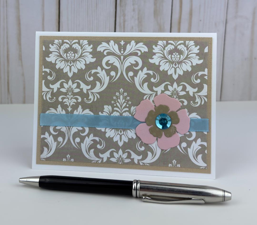 This dreamy damask card making kit allows you to create 6 classic style handmade note cards. The DIY greeting card kit contains all the paper materials and embellishments you need to assemble six A2 cards (4.25 x 5.5 inches), and comes with coordinating envelopes. The die cut flowers and ribbons bring a touch of elegance to the cards, making them perfect for a variety of occasions.