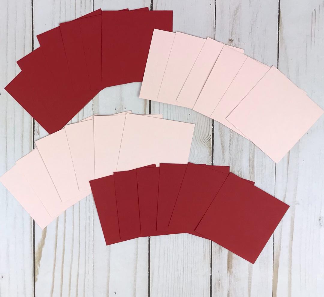 * 24 pieces of solid cardstock to serve as the decorative mat (12 red mats, 12 pink mats)
