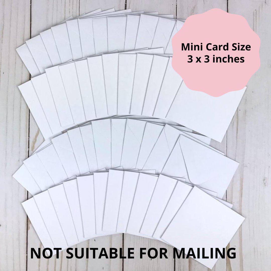 SIZE:* Each card is 3 x 3 inches and comes with coordinating envelopes.