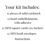 Mini Valentine Card Making Kit to DIY 12 Small Cards with Envelopes