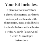 DETAILS: This kit provides all the paper and embellishments needed to assemble 6 Christmas cards.