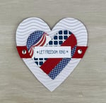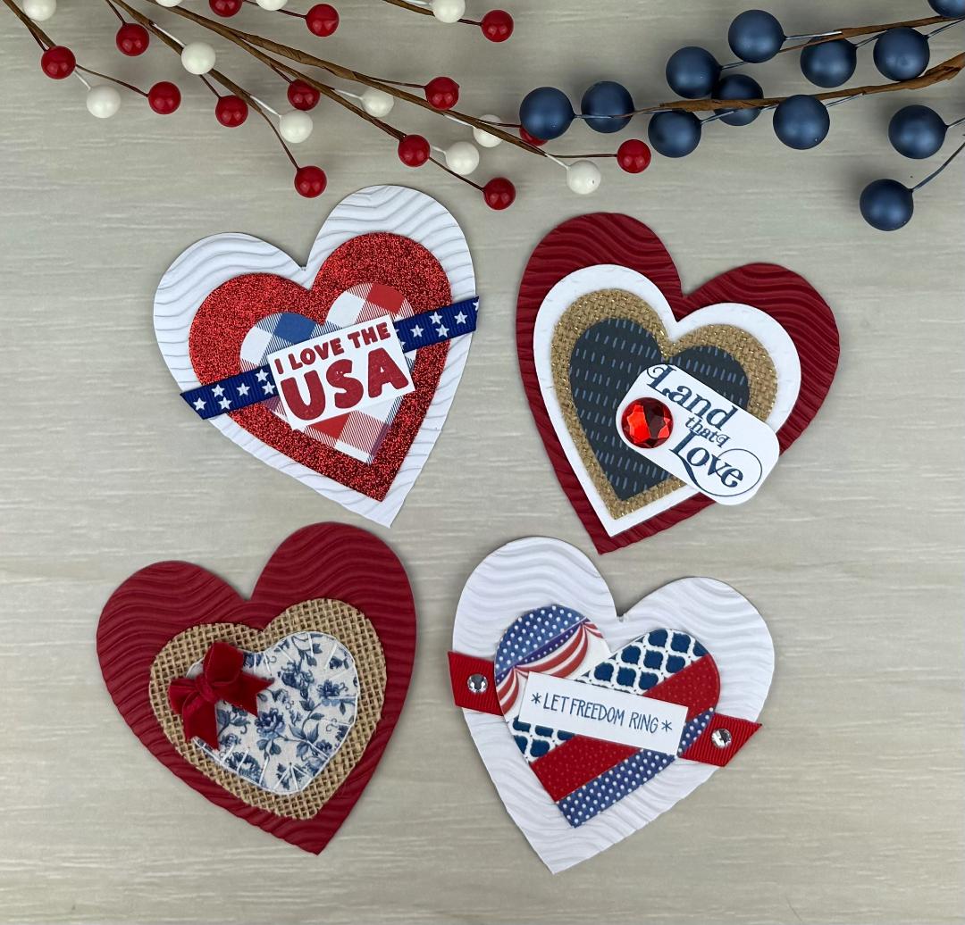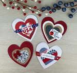This HANDMADE patriotic card toppers pack of 4 ephemera pieces is perfect for embellishing your own greeting cards. This pack contains four (4x4 inch) 4th of July heart embellishments that are perfect for greeting cards, scrapbooks, junk journals, gift tags and more!