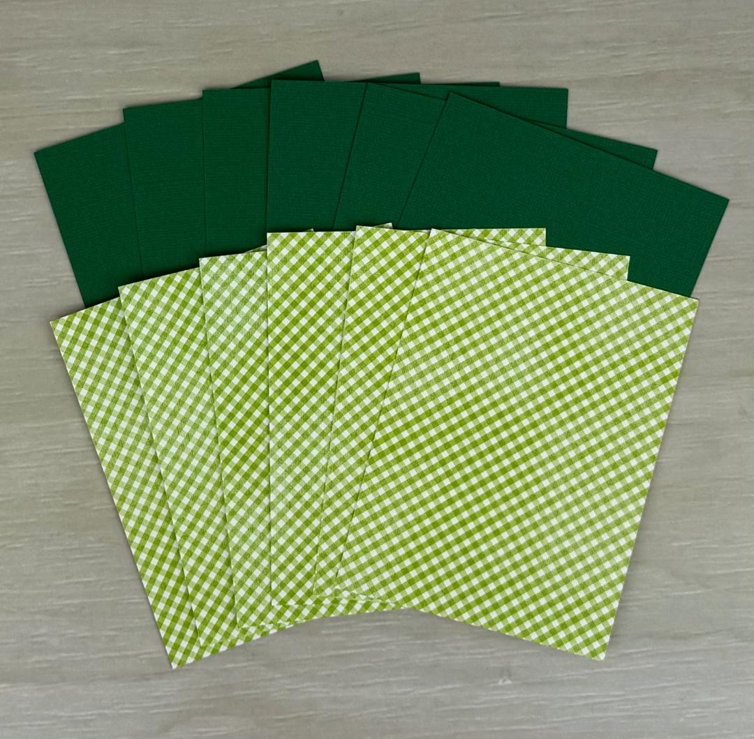 * 6 pieces of green and white plaid scrapbook paper to serve as the second layer.